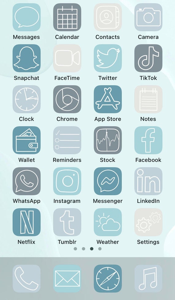 Aesthetic Ios14 Iphone App Icons 50 Turquoise Blue Gray App Etsy Israel
